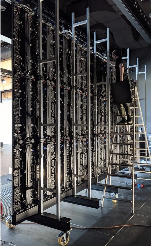 Першапачаткова заказчык меў намер мець экран, які можа вісець на ферме на сцэне, але калі падумаць, на самай справе больш верагодна пабудаваць сцяну, якую можна пакласці на падлогу сцэны. Мы рэкамендавалі пабудаваць рухомы кранштэйн з коламі, экран кладуць на кранштэйны, а не стаяць непасрэдна на падлозе. Перавага гэтага рашэння ў тым, што святлодыёдная сцяна можа свабодна перамяшчацца ў любыя пазіцыі на сцэне без разборкі.