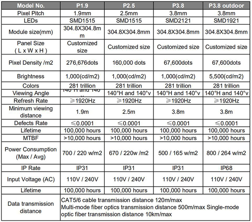 Яркасць:1,000nits для памяшканняў і 5500nits для вуліц